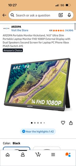 Arzopa Portable Monitor 14 Inch$50Los Angeles, CA