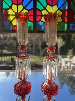 Bohemian Cranberry Glass Hurricane Candle Holder$440Tacoma, WA