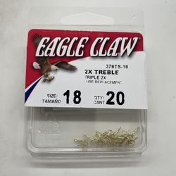 Eagle Claw 376TSH-18 2x Treble Hook 20 Pack, Size 18, Fishing Hook.$2Las Vegas, NV