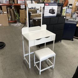 White Small Vanity Set, Dressing Table and Cushion Stool Set, with 3-Color Adjustable Lights Mirror, One drawer $50Las Vegas, NV