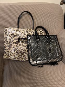 Kristen Stewart Cheetah Print Purse And Black Plaid Clear Purse With Shoulder Strap$8Fort Lauderdale, FL