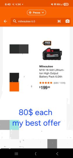 Milwaukee 6.0 18voly battery batteries $100Las Vegas, NV