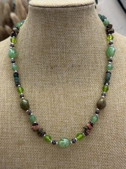 Unakite/Adventurine Chips & Acrylic Beads Necklace 17β+2.5βext.$8San Diego, CA