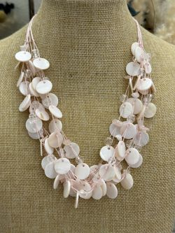 Natural Stones Necklace/Mother of Pearl, Tiger Eye & Heishe Beads Shell. Goldtone Spacer with Rhinestones.$15San Diego, CA
