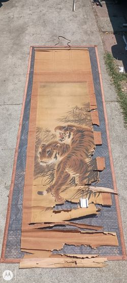 ANCIENT 6'Ft REAL ANTIQUE JAPANESE SIGNED AND STAMPED BY WELL KNOWN JAPANESE ARTIST HUNDREDS OF YEARS AGO LOW PRICE NEEDS RESTORATION $50Arcadia, CA