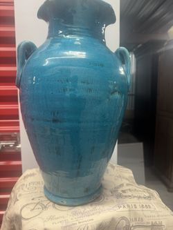 Large, Heavy Shabby Turquoise Thick Fire Glazed Terracotta Vase w/ Handles$60Keller, TX
