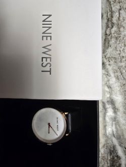 This is a Nine West Felicity Analog Wrist Watch with a white dial, rose gold-tone case, and black faux leather strap. $35West Palm Beach, FL