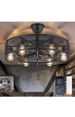 26” Caged Outdoor Ceiling Fan with Light – Flush Mount, Remote/App Control, 6 Speeds, Timer, Black $60Agoura Hills, CA