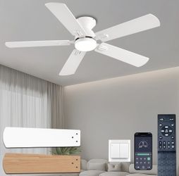 52” Low Profile Ceiling Fan with Light–Flush Mount Fan with Remote, Double-Sided Blades, Dimmable LED, for Bedroom or Patio (White)$30Agoura Hills, CA