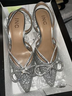 Silver glittery pointy bow heels$65Houston, TX