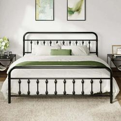 14 Inch Queen Size Metal Platform Bed Frame with Vintage Victorian Style, Wrought Iron Headboard and Footboard/Mattress Foundation for Storage/No Box $133Downey, CA
