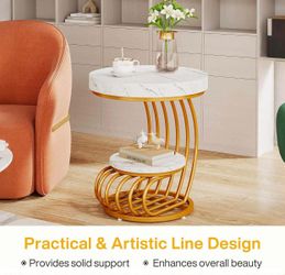 Round End Table, 2-Tier Modern Wood Side Table with Shelf Storage, Faux Marble Sofa Side Bedside Nightstand, Arc-Shaped Frame Accent, Gold & White$94Downey, CA