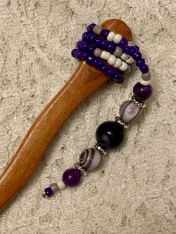 Wooden Handcrafted Beaded Chopsticks Hair Pin With Purple Agate Beads, 7”$11Chehalis, WA