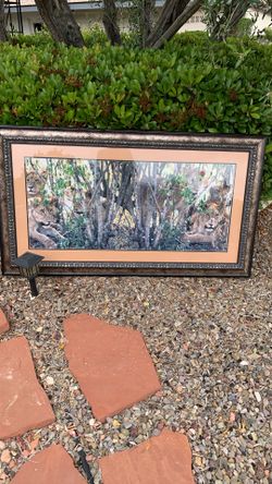 Amazing Framed Art Picture Photograph Of Six Lyons In The Bushes. Nicely Matted And Framed. 56”x32”$35Escondido, CA
