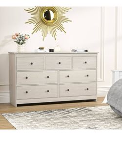 N15 $160 55'' Natural Dresser for Bedroom, 7 Deep Drawer Large Wood Dresser with Gold Handles, Modern Wide Storage Dressers & Chests of Drawers for H$160Rancho Cucamonga, CA