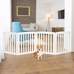 "24 Inch Pet Dog Gate, Foldable Freestanding Dog Door 4 Panel, White Wooden Z Shape Step Over Pet Fence for Entryway, Stairs, Doorway, White"