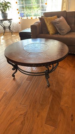 39 In Round Wood And Iron Coffee Table And Side Table Set $100Los Angeles, CA
