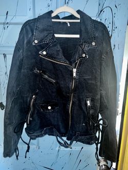 Free People Retro Oversized Denim Lace Up Moto Jacket$69Denver, CO