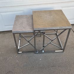 2 Modern End Tables Like New $40 The Pair, Beautiful Chrome Base, Stone Look Tops $40Grand Terrace, CA