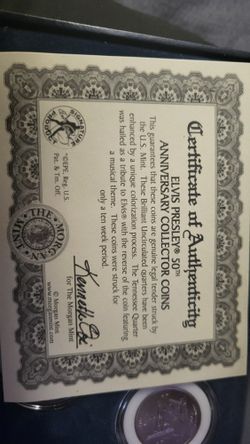 5 Elvis Presley 50th Anniversary Collector Coins. Statehood Quarters $100Texarkana, TX