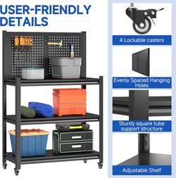 48" Adjustable Workbench with Pegboard,Heavy Duty Steel Work Bench with Lockable Wheels,Metal Rolling Work Table,3-Tier Metal Tool Storage Bench for G$70Ontario, CA