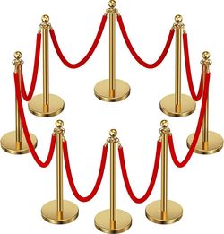 8pcs Sturdy Gold Stanchion Posts and 8pcs High Quality Red Carpet Velvet Ropes, Water/Sand/Concrete Fillable Leakproof Base, Crowd Control Barriers fo$75Ontario, CA