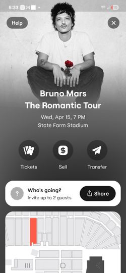 Bruno Mars Tickets$950Glendale, AZ