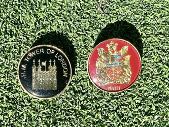 2-pins, Vintage H.M. Tower of London Souvenir Black & Gold Lapel Brooch Pin & A BATH Red & Gold Lapel Brooch Pin$10Torrance, CA