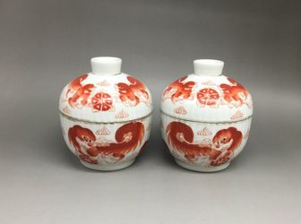 Antique Pair of Copper Red and White Cover Bowl$280City Of Industry, CA