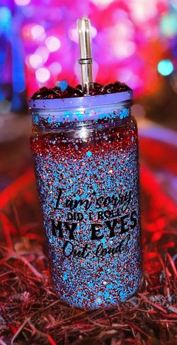 16 oz, Blue & Red Glitter Tumbler —“I Am Sorry, Did I Roll My Eyes Out Loud” Tumbler$27North Smithfield, RI