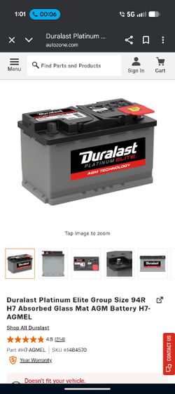 Duralast Platinum Elite Group Size 94R H7 Absorbed Glass Mat AGM Battery H7-AGMEL$100Ontario, CA
