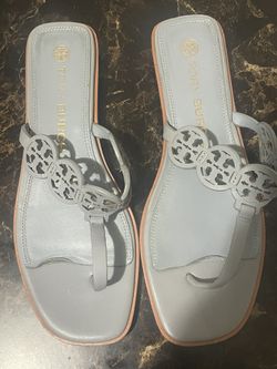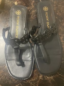 TORY BURCH Tiny Miller Medallion Logo Leather Wedge Thong Sandals Sz 11$120Fort Lauderdale, FL