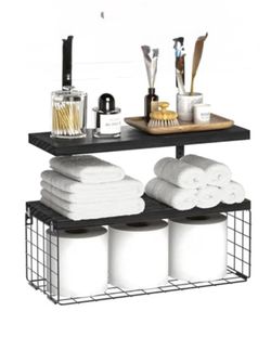 Floating shelves, set of 2 with toilet paper basket, black, restroom shelves, wall shelves,$15Riverside, CA