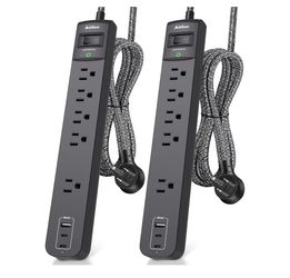 2 Pack Power Strip Surge Protector - 5 Widely Spaced Outlets 3 USB Charging Ports, 1875W/15A 6Ft Braided Extension Cord, Flat Plug Overload Protection$15Riverside, CA