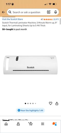 Scotch Thermal Laminator Machine, 5 Minute Warm-up, 9" Input, for Laminating Sheets Up to 5-Mil Thick$30Buena Park, CA