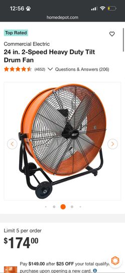 Industrial Fans/Commercial Electric Industrial Fans Customers Also Viewed Industrial Fan 24 in. Heavy-Duty Drum 3-Speed 9640 CFM Air Circulation High$120Fullerton, CA