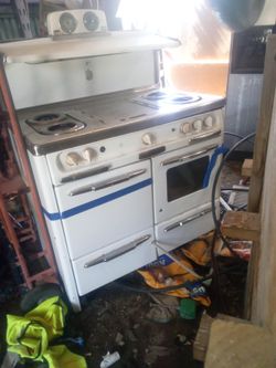 This item is a vintage Wedgewood stove, likely from the 1940s or 1950s, featuring white porcelain enamel and chrome accents. $500Bakersfield, CA