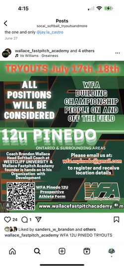 Wallace Fast pitch Academy Softball Uniform$1Los Angeles, CA