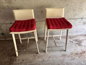 White Leather And Aluminum Bar Stools Pair With Red Cushions $50Old Saybrook, CT
