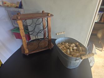6 Bottle Counter Top Wine Rack Holder With Bucket And Corks$20Mesa, AZ