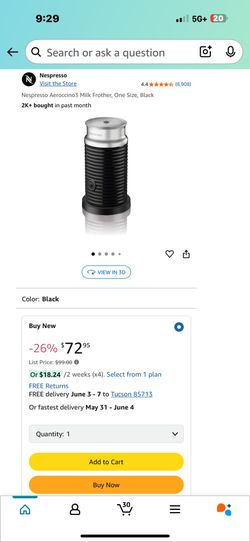 Nespresso Aeroccino3 Milk Frother, One Size, Black$50Tucson, AZ