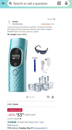 Laser Hair Removal for Women and Men - Permanent Painless Ice Cooling IPL Device Remover Machine with Shaver, Goggles, 999,999 Flashes for Body and Fa$40Tucson, AZ