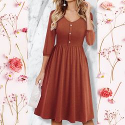 Orange Cotton Dress with POCKETS! 3/4 Sleeves -V Neck -Decorative Buttons -A Line cinched -XL$12Lake Stevens, WA
