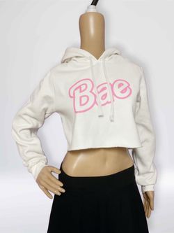 Bae Crop Top Hoodie Size M White Pink Lettering Cotton Braided Drawstring NWOT$16Lake Stevens, WA