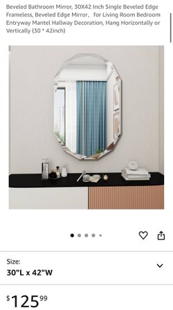 Beveled Bathroom Mirror, 30X42 Inch Single Beveled Edge Frameless$80Killeen, TX