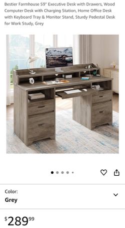 Bestier Farmhouse 59" Executive Desk with Drawers, Wood Computer Desk$180Killeen, TX