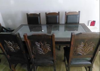 🍽️ Wooden Dining Table Set with Glass Top + 6 Chairs✨$260Houston, TX