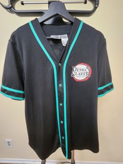 Demon Slayer Tanjiro Baseball Jersey Black Kimetsu No Yaiba Anime Button Up$20Pasadena, CA