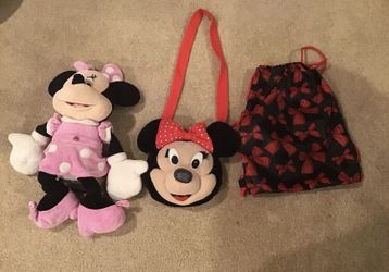 Minnie Mouse Stuffed Animal With A Minnie Mouse Handbag And Drawstring Bag$6Creve Coeur, MO