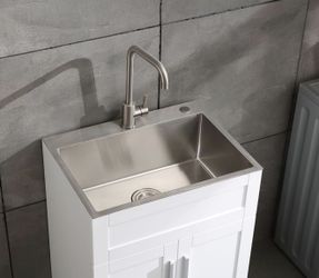 24in Stainless Steel Washing Sink w, Faucet Hoses and Drain Head Only(Update$80Perris, CA